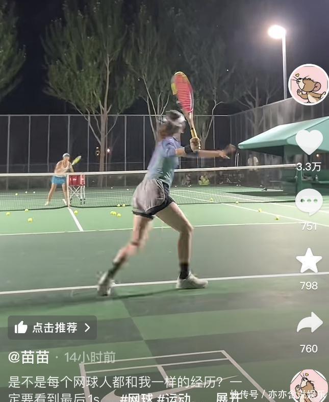 苗苗7月25日新发布的一则动态,纪录下她在打网球时发生的随机。